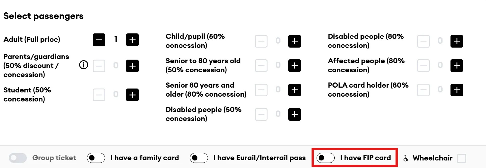For all journeys with a FIP Coupon, a free ticket or reservation must be obtained before each journey (see Train Categories and Reservations).
